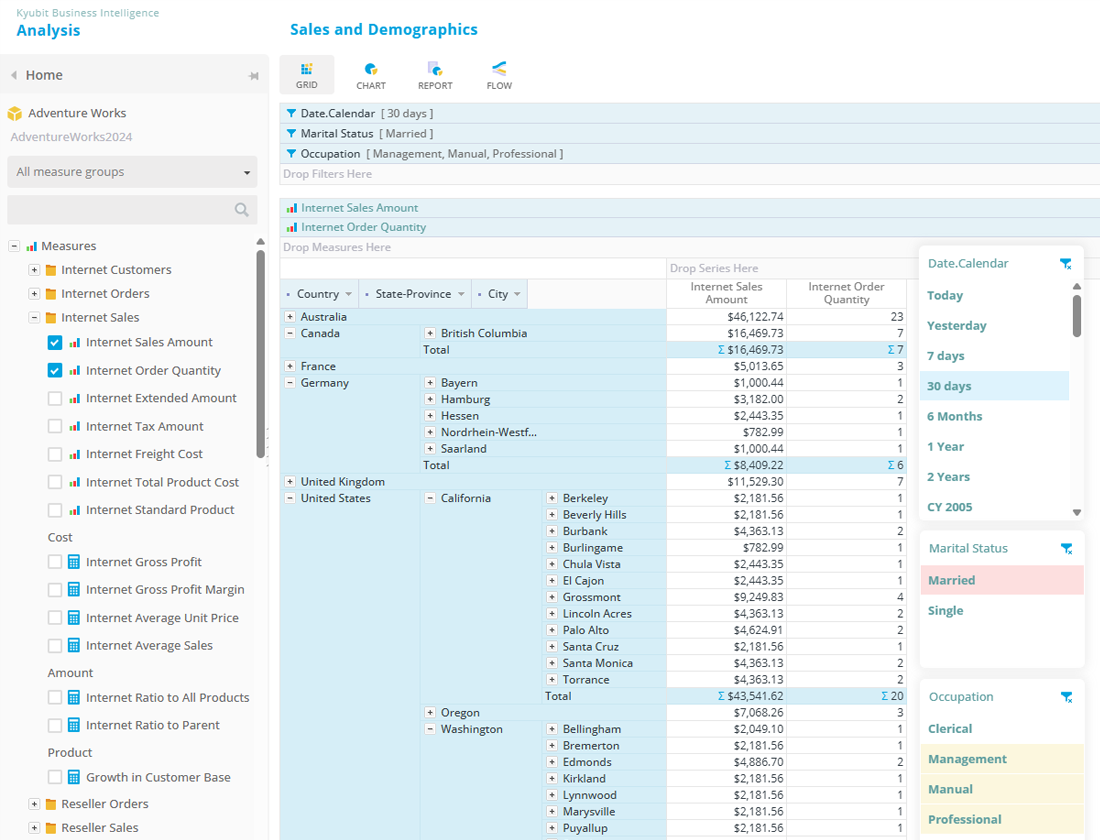 Kyubit OLAP tools provide