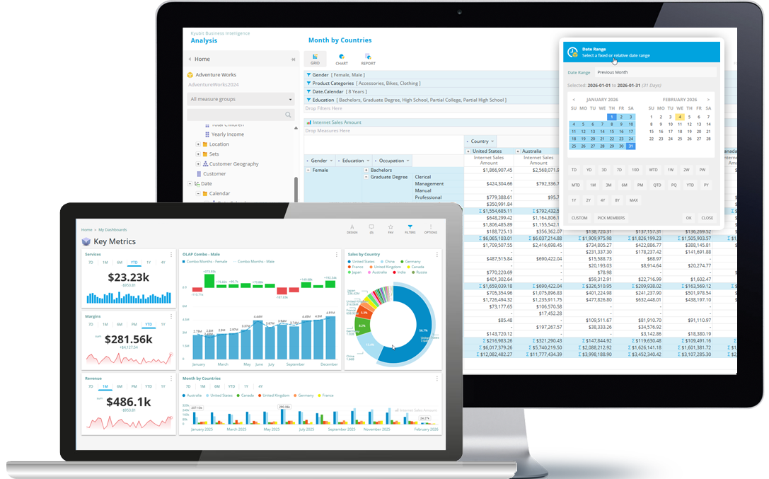 Download Kyubit BI Tools today and unlock the full potential of your data visualizations and ad-hoc analysis. With our seamless 5-minute installation, you'll gain unrestricted access to every feature—from interactive dashboards to automated report scheduling. Start your trial today and see how easy enterprise BI can be.