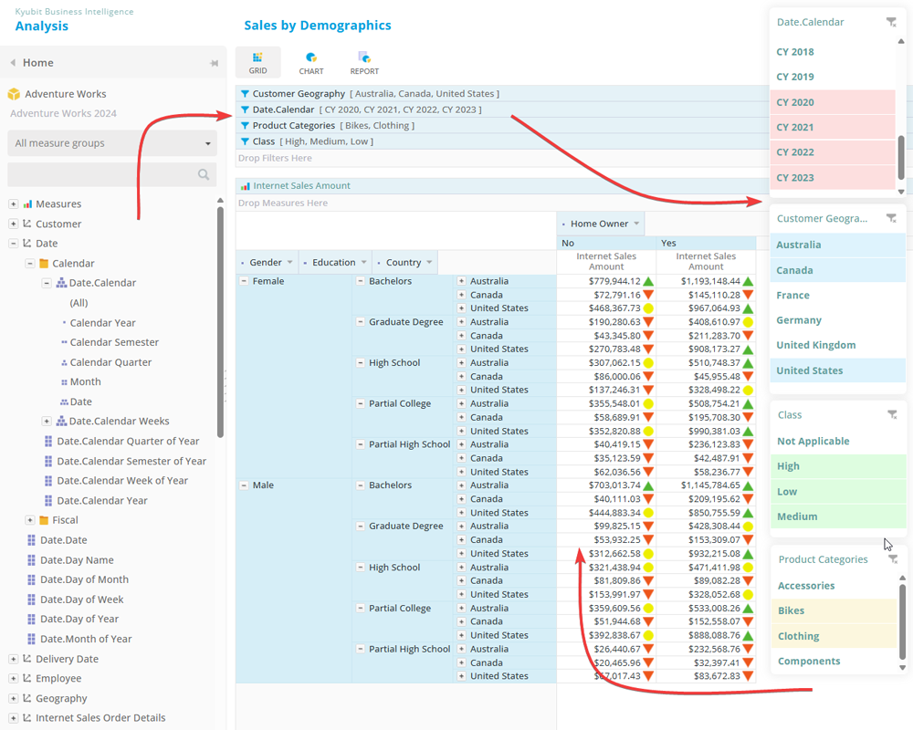 To get started with self-service analytics in Kyubit BI, follow these steps that outline common analysis features and help you quickly discover the full potential of self-service analytics and start with data exploration.